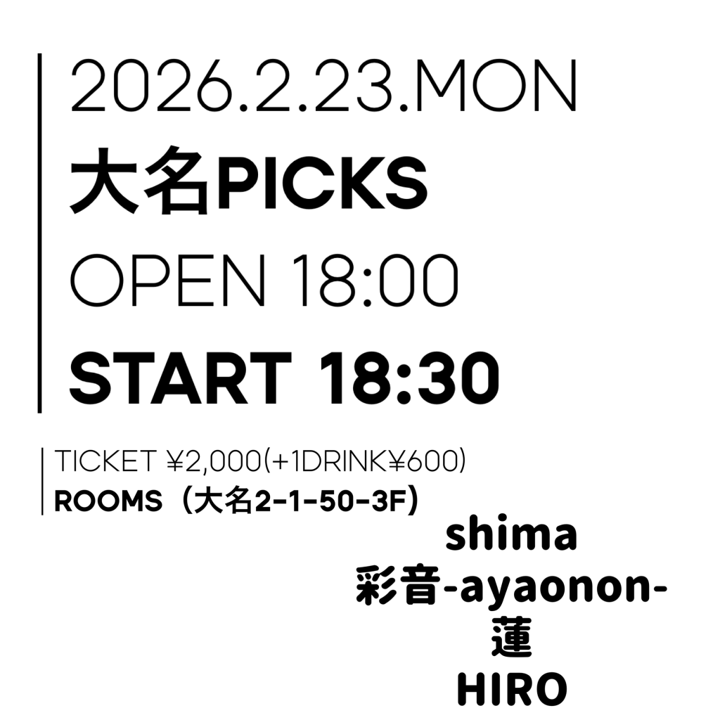2026/2/23(月祝)shima/彩音-ayaonon-/蓮/HIRO『大名PICKS』